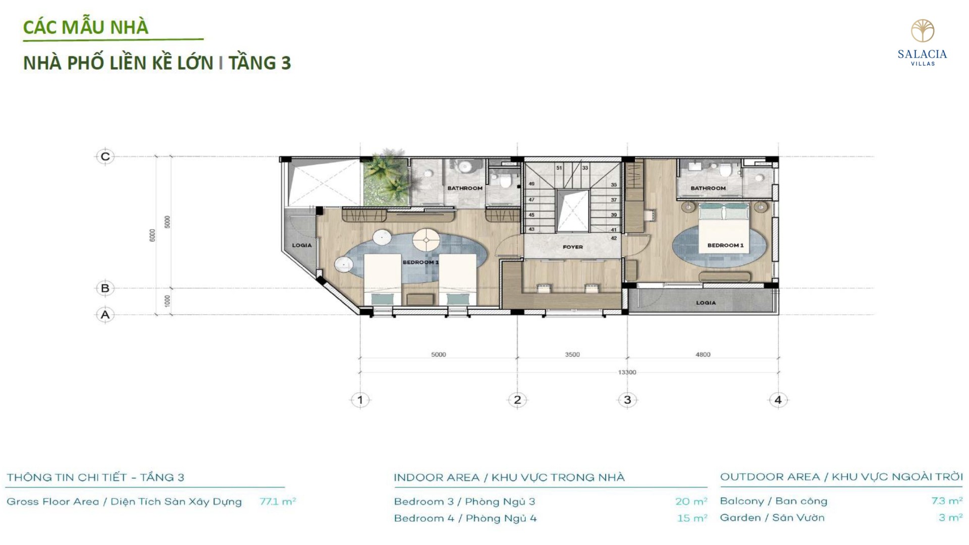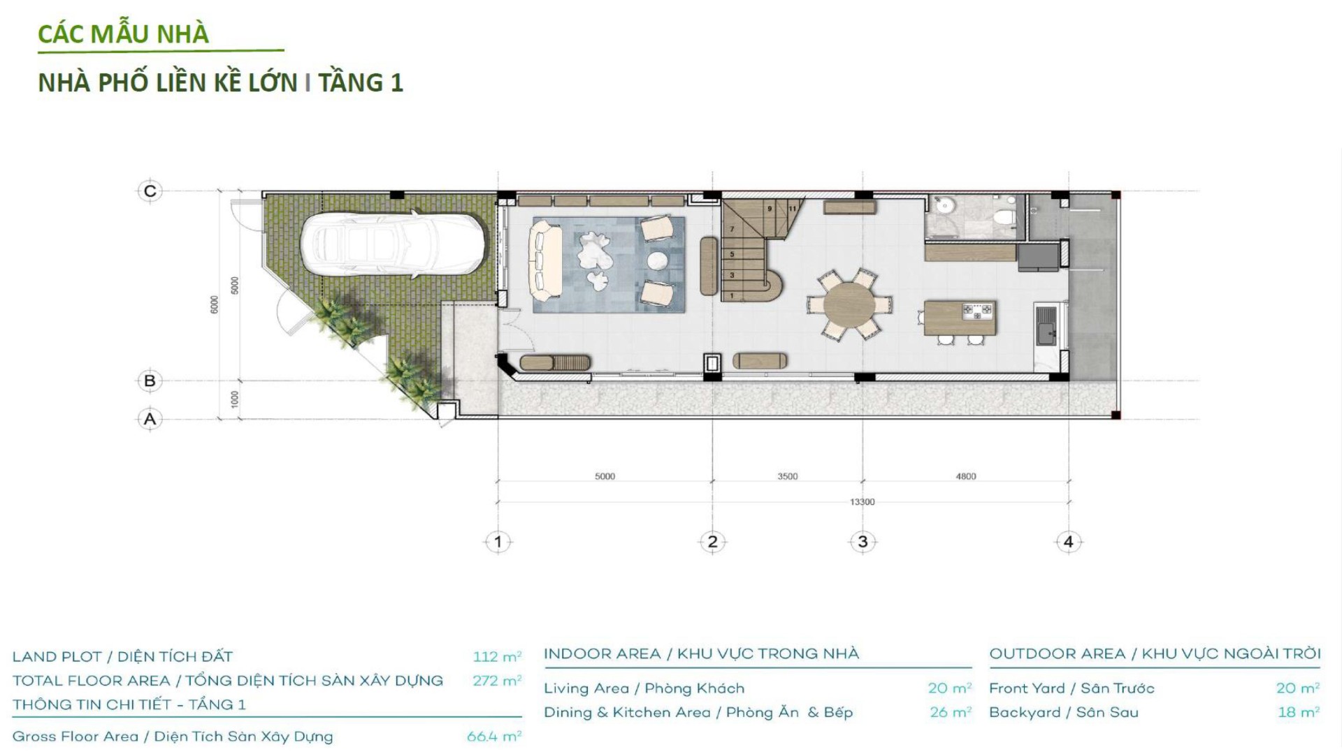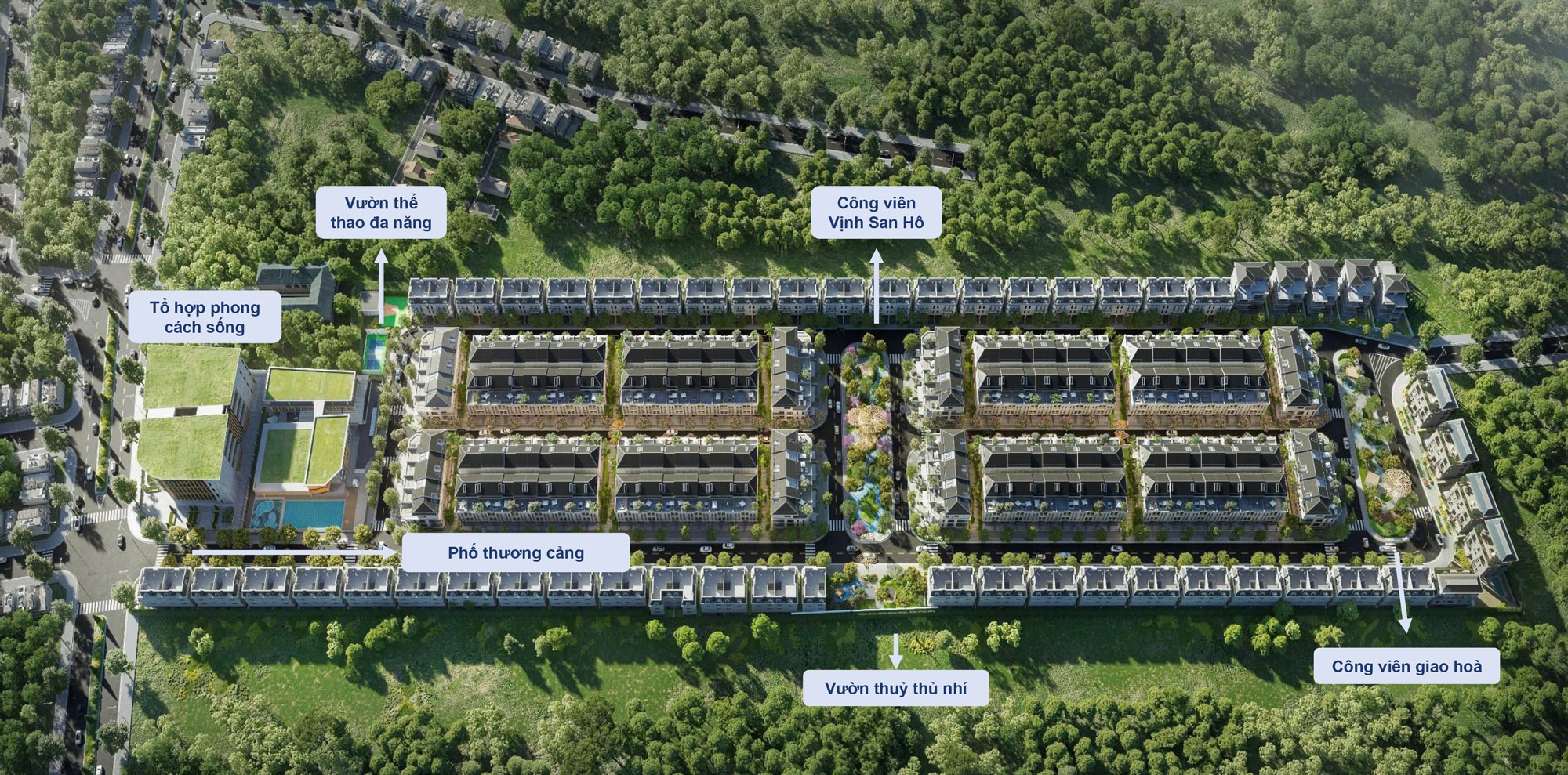 Tổng số sản phẩm: 333 căn, bao gồm: ✓ Nhà phố liền kề: 192 căn (85 m²) ✓ Nhà phố liền kề lớn: 48 căn (110–112 m²) ✓ Biệt thự song lập: 83 căn (133–196 m²) ✓ Biệt thự đơn lập: 10 căn (297–412 m²) |