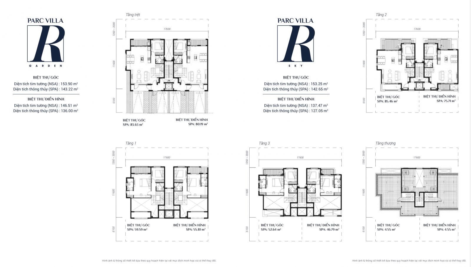 Căn dưới 2 tầng (~153m²)